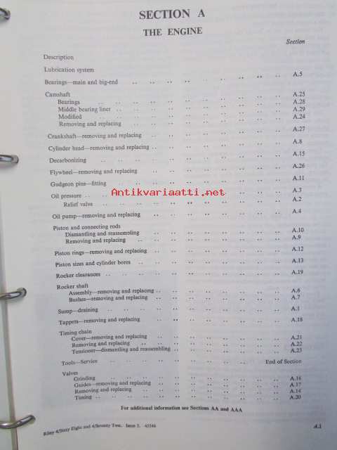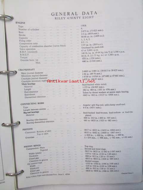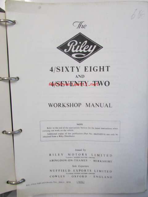 The Riley 4/sixty eight and 4/seventy two Workshop manual (Part No 1031A) - korjaamokäsikirja, katso kuvista tarkemmin