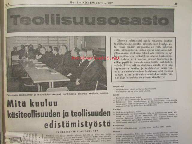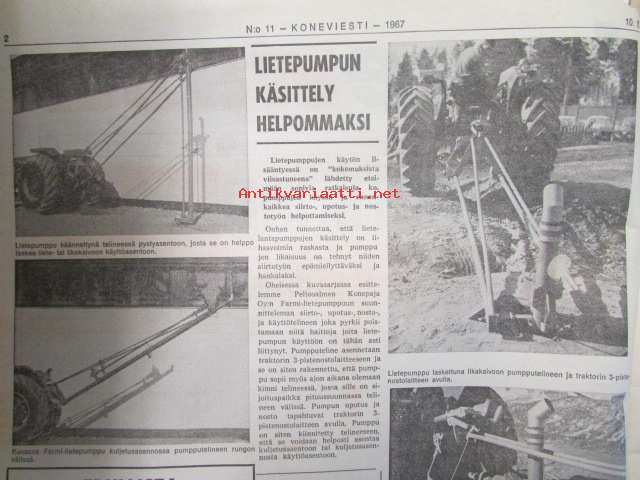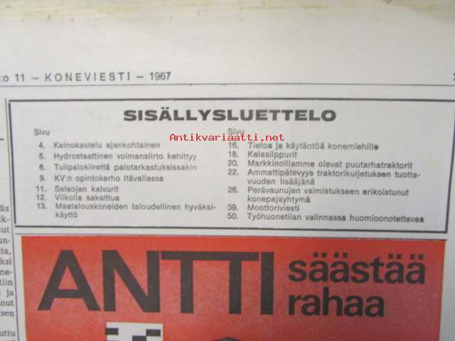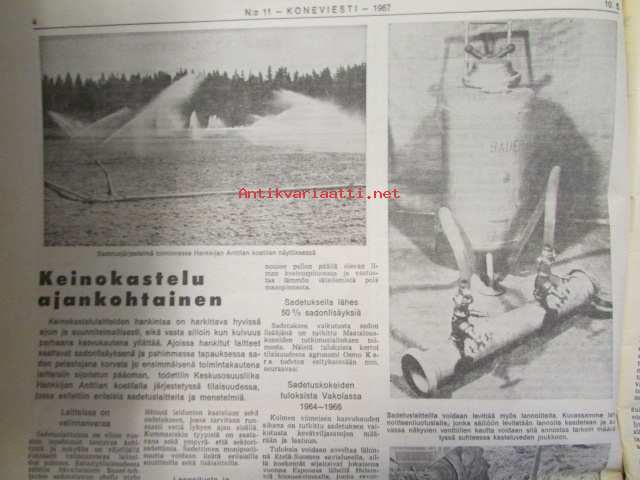 Maaseudun Ammattilehti Oy, 1967Koneviesti 1967 nr 11 -mm. Keinokastelu ajankohtainen, Hydrostaattinen voimansiirto kehittyy, Tulipalokiirettä palotarkastuksissakin, KV:n opintokerho Itävallassa, Salaojan kaivurit, Viikolla saksittua, Maatlouskoneiden taloudellinen hyväksikäyttö, Tietoa ja käytäntöä konemiehille, Kelasilppurit, Markkinoillamme olevat puutarhatraktorit, Ammattipätevyys traktorikuljetuksen tuottavuuden lisääjänä, perävaunujen valmistukseen erikoistunut konepajayhtymä, Moottoriviesti, Työhuonetilan valinnassa huomioonotettava.