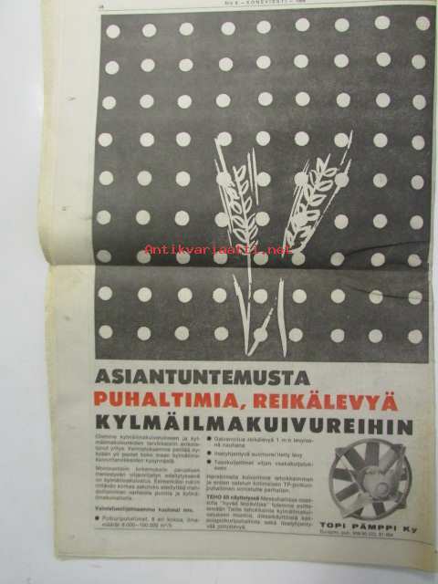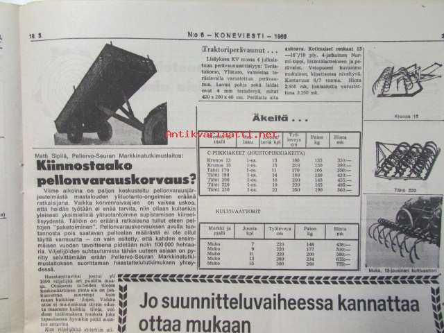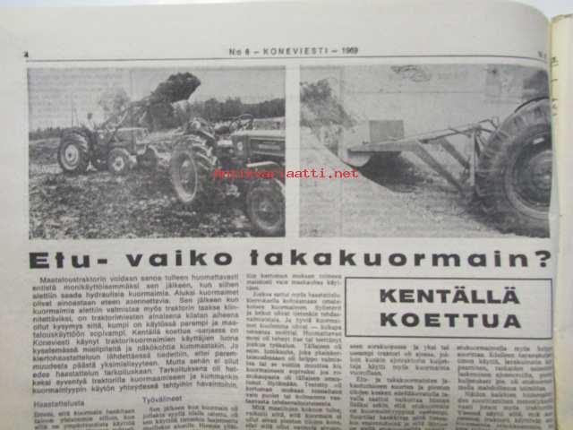 Maaseudun Ammattilehti Oy, 1969Koneviesti 1969 nr 6 -mm. Etu- vaiko takakuormain?, SIMA - maatalousnäyttely Pariisissa, Salaojituksen tulevaisuus, Vakolan tiiedote 6/68 sadetuslaitteet, Nordsten - kylvökone, Veroilmoitukset on jätetty, Lapiorullaäkeet, Joustopiikkiäkeet, Hakkuun uudet työmenetelmät, KV kysyy - lukijat vastaavat: Ajankohtaista muokkaussesta, Kannoistako apu puupulaan, Viikolla tapahtunutta, Lumi hidastaa juontotöitä, Naapurin metsätyötapaturmista, Sivusiirto ja pystytuet, Hydraliikan perusteet 2, Metallikaarihitsauskurssi VII, Pienteollisuuslainat haettavana, katso kuvista tarkempi sisältö.