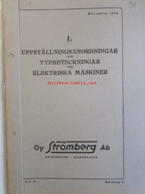 Uppställningsanordningar och Typbeteckningar för Elektriska maskiner - Sähkökoneiden tyyppimerkinnät, Luettelo I1 no 11