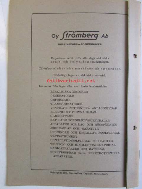 Suomen sähkö osakeyhtiö, 193815 x 21 cm.