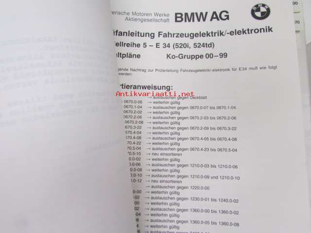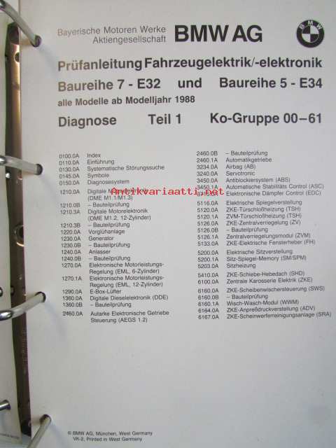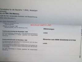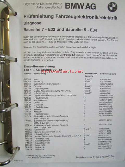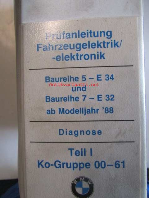 BMW Prüfanleitung Fahrzeugelektrik / -elektronik, Baureihe 5 - E 34 und Baureihe 7 - E 32 ab Modelljahr '88 Diagnose I-II (osittain Suomenkielinen) - BMW Sähkö ja elektroniikka 2 kansiota, Katso kuvasta tarkemmat malli ja sisällystiedot.