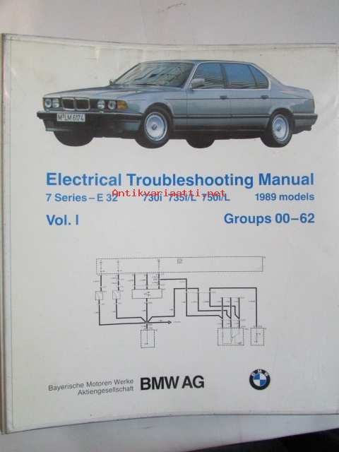 BMW Electrical Troubleshooting Manual vol 1./vol.2, 7 series (E32) model Year 1987-89, Elektroniikan ongelmien ratkaisut 2 erillistä kansiota, Katso kuvasta tarkemmat malli ja sisällystiedot.