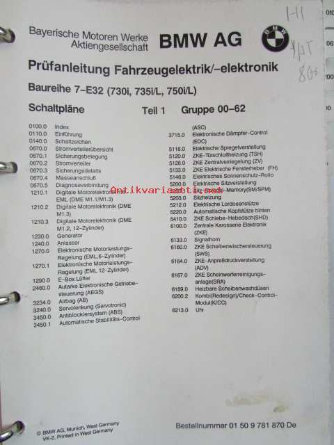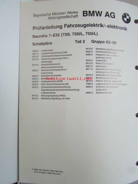 BMW Electrical Troubleshooting Manual vol 1./vol.2, 7 series (E32) model Year 1987-89, Elektroniikan ongelmien ratkaisut 2 erillistä kansiota, Katso kuvasta