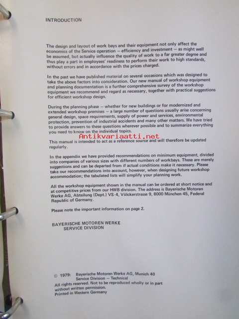 BMW Planning Documentation Workshop Equipment, Katso kuvasta tarkemmat malli ja sisällystiedot.