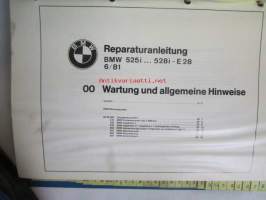 BMW Reparaturranleitung BMW 525 ... 528 i E 28, Katso kuvasta tarkemmat mallit ja sisällystiedot.