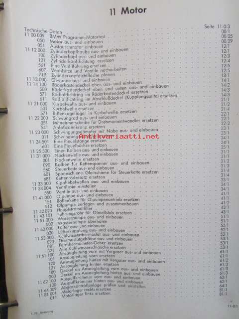 BMW Reparaturanleitung 2500 / 2800, Korjaamokirja, Katso kuvasta tarkemmat malli ja sisällystiedot.