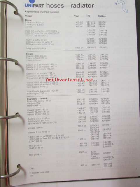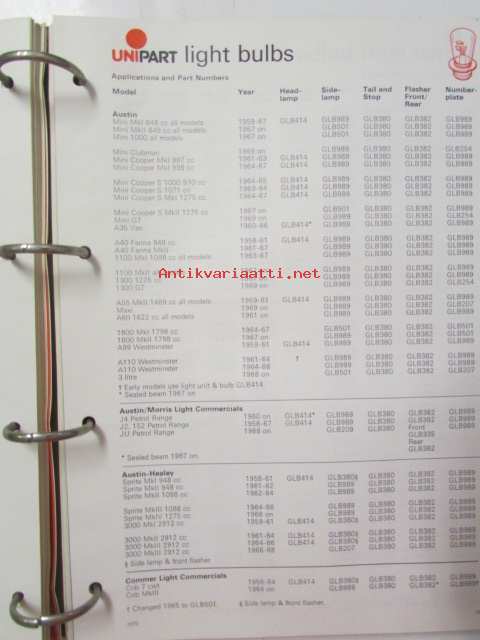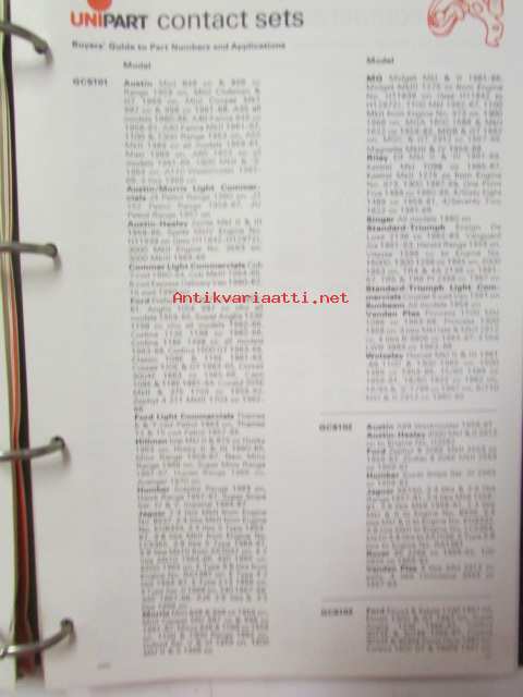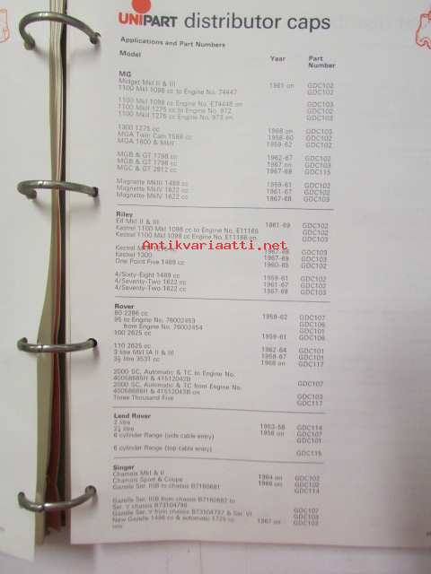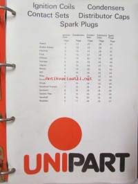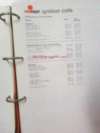 Unipart Ignition Coils, Condensers Contant Sets, Distributor Caps, Spark Plugs - Tarvikeluettelo 60-luvun autoihin, Katso kuvista tarkemmin luetteloiden sisällys.