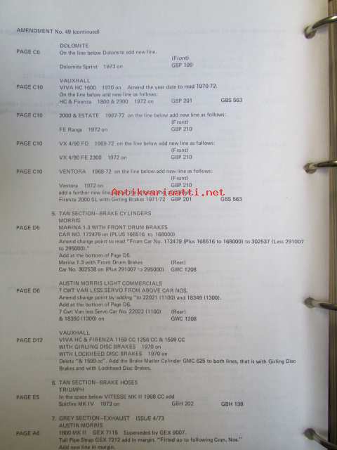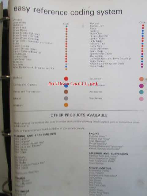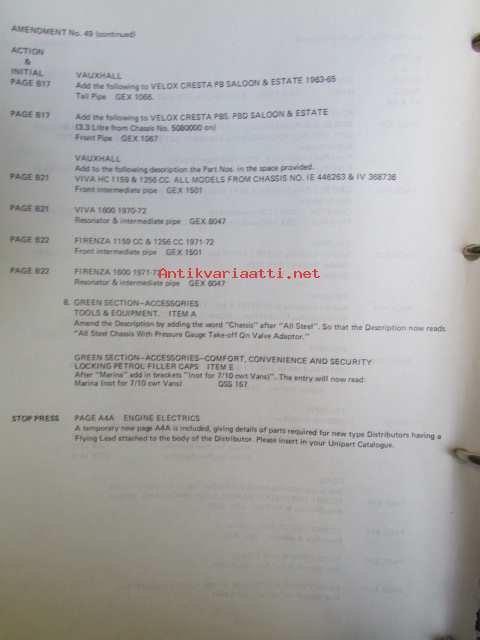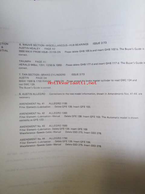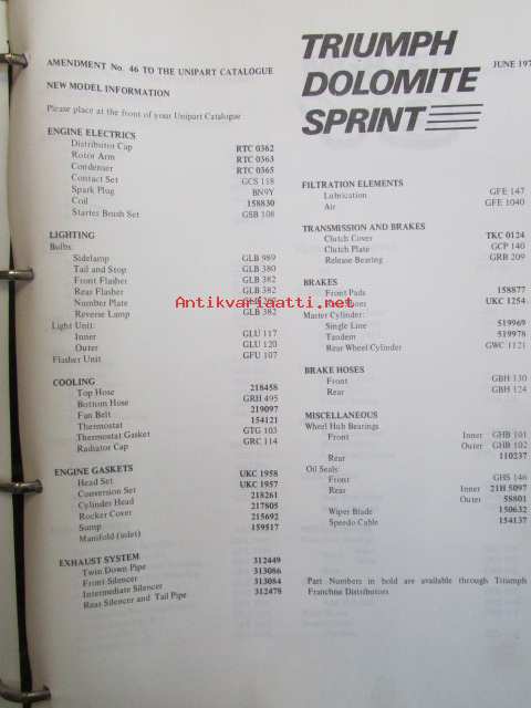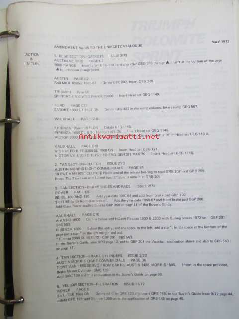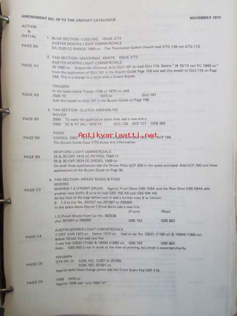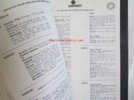 Unipart Parts and Accessories Catalogue v. 1973, Katso kuvista tarkemmin luetteloiden sisällys ja ilmestymisvuodet.