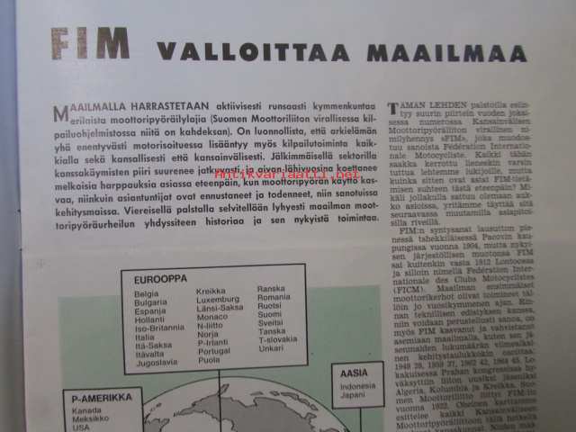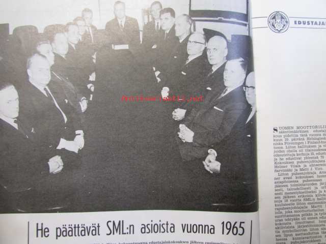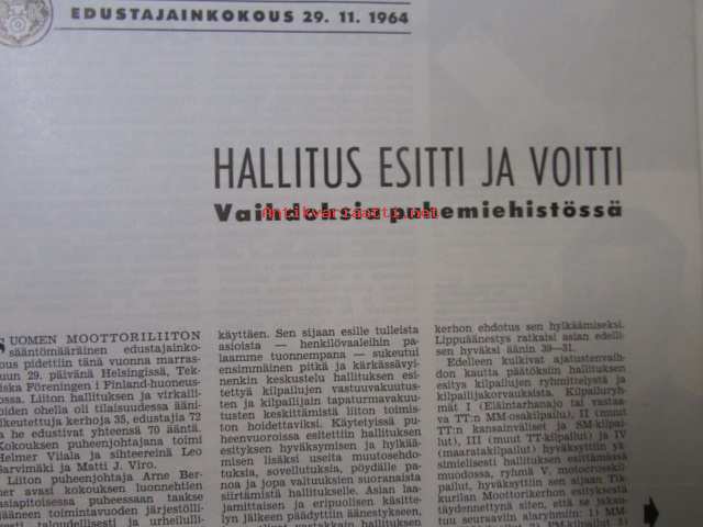 Moottoriurheilu 1964 nr 12 -mm. He päättävät SML:n asioista vuonna -65, Hallitus esitti ja voitti: vaihdoksia puhemiehistössä, FIM