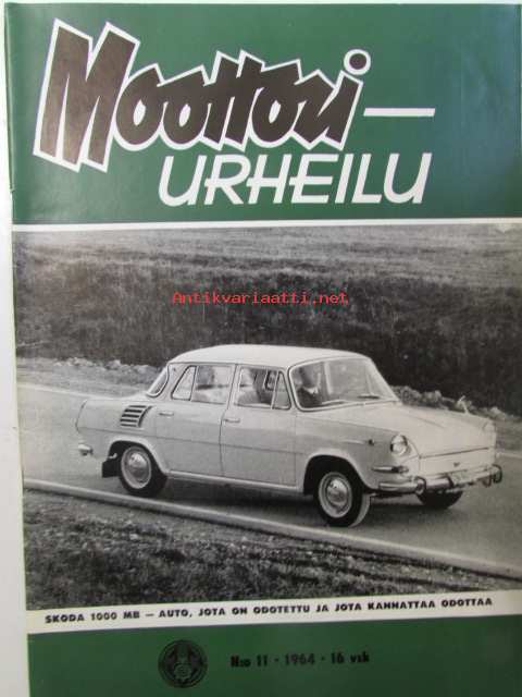 Moottoriurheilu 1964 nr 11 Moottori-urheilu 1964 nr 11 -mm. Kannessa Skoda 100 MB. Vesijärveä kierretty jo 50 vuotta, Mauri Penttilä Vesijärven sankari, 93
