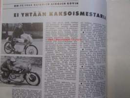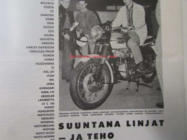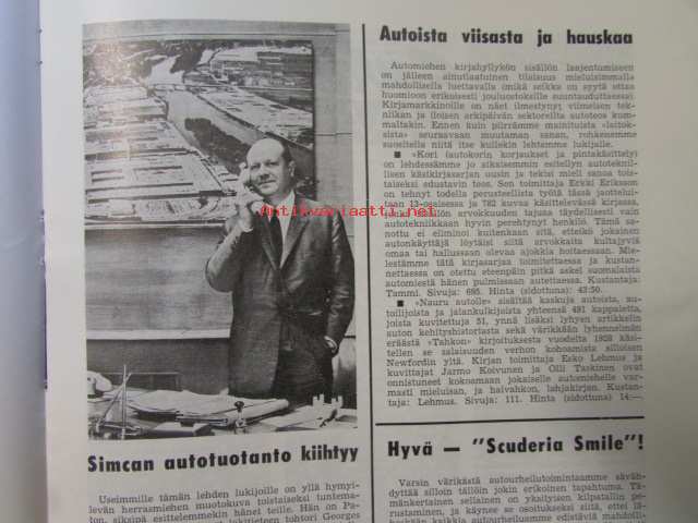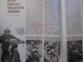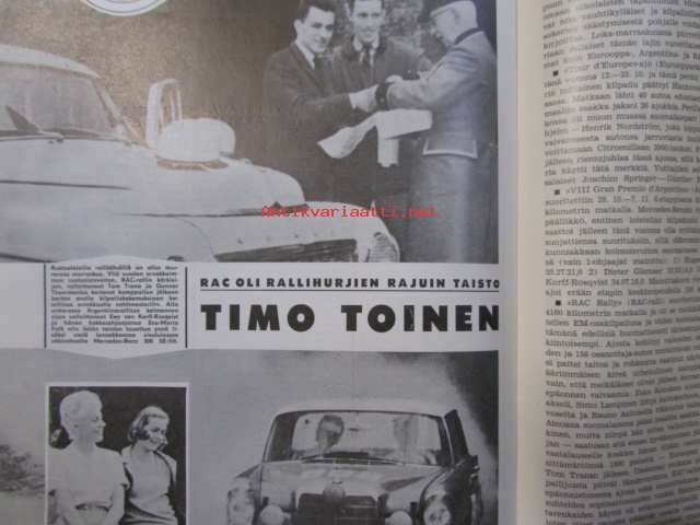 Moottoriurheilu 1964 nr 11 Moottori-urheilu 1964 nr 11 -mm. Kannessa Skoda 100 MB. Vesijärveä kierretty jo 50 vuotta, Mauri Penttilä Vesijärven sankari, 93 lähti, vain 14 palasi jokaisella taas jotakin Porvoossa mallireitti, Polkujen ja teiden mestarit, Eino Perko : Liittomme suunta on oikea, Baschin raportit, Ei yhtään kaksoismestareita, Suuntana linjat ja teho, Mestareita ja mestaruuksia, Moottoriurheilun asiamieskilpailu - ajankohtainen asia, Pekka ja Heikki - selvähän se!, Tällainen oli rallivuosi 1964, Rac oli rallihurjien rajun taisto Timo toinen, Brittivalta vahvistui taas: John Surtees ja Graham Hill ja James Clark, esitellään NSU Prinz 1000 L21 x 29 cm.