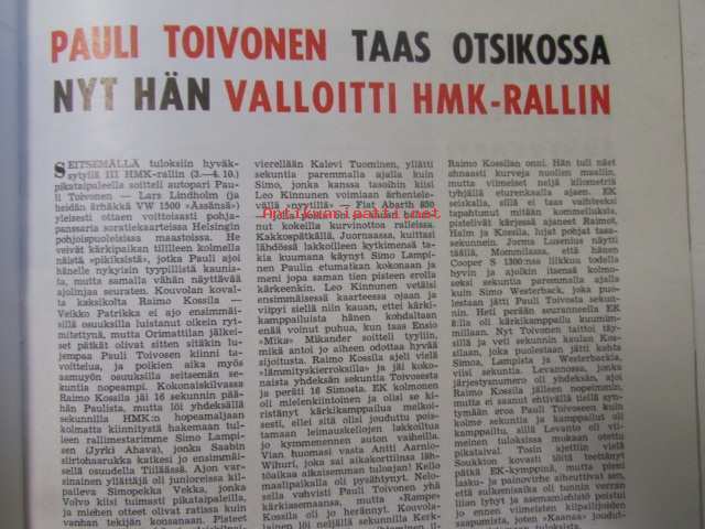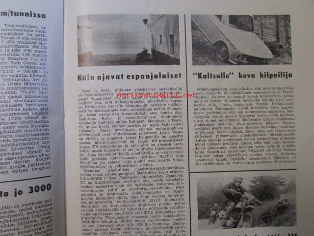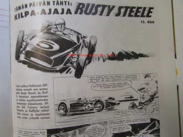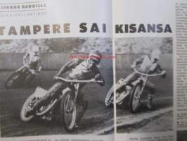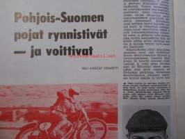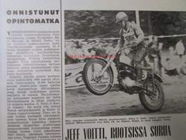Moottoriurheilu 1964 nr 10 Moottoriurheilu 1964 nr 10 -mm. Veteraanimestarit, Jeff voitti ja Ruotsissa surua, Lähti taas pyörimään, Timon kolmas perättäinen: Timo Laine ja Olavi Turunen ja Kalevi Lahtinen, Pohjois-Suomen pojat rynnistivät ja voittivat, Tampere sai kisansa, Kärki tiivistyy nuoret nousevat, Steve Mcqueen: kuuluisin kuski 6- päivän teillä, Simosta talleista kelloista, Pauli Toivonen taas otsikossa nyt hän valloitti HMK-rallin, Kilpailijat ja kilpailut edistyneet tuntuvasti, Voittaa kilvassakin Volkswagen, Tallimiehet ja harrastajat asetettava omiin luokkiin.21 x 29 cm.