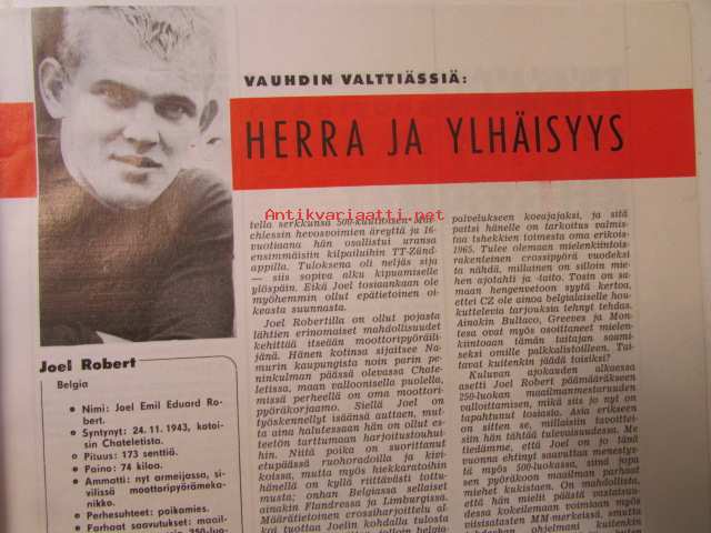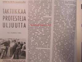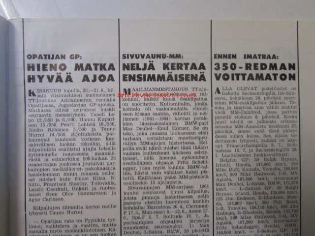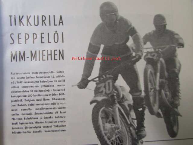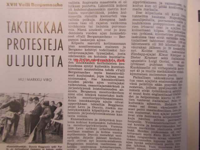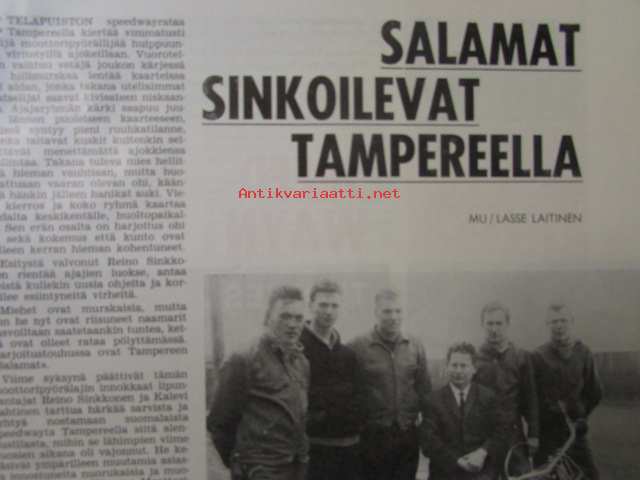 Moottoriurheilu 1964 nr 8 -mm. Rankka kilpailu, Näytelmä joka ei koskaan unohdu, Marjaana Mattilan erikoisartikkeli. Kun VPK lainasi kypärät, Meikäläisetkin