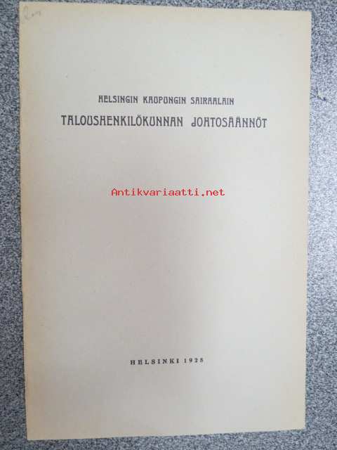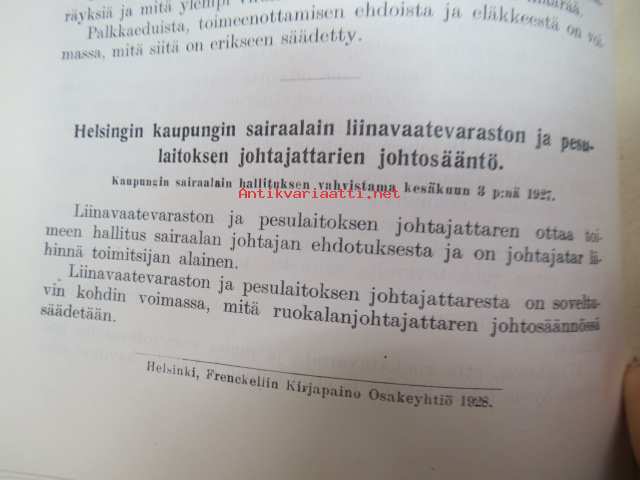 Helsingin kaupungin sairaalain taloushenkilökunnan johtosääntö 1928