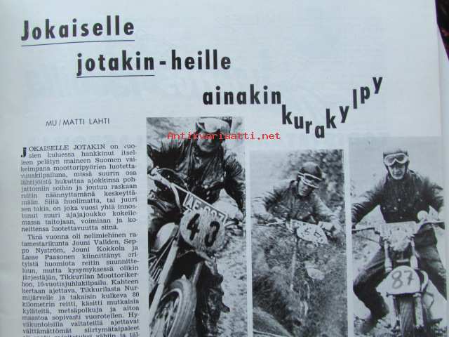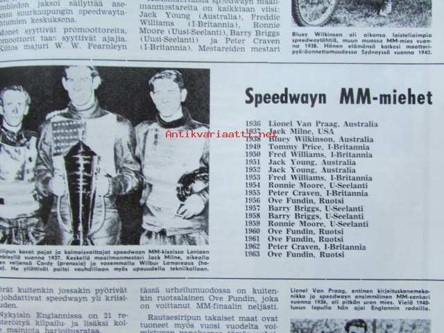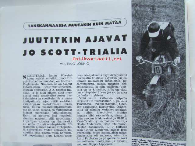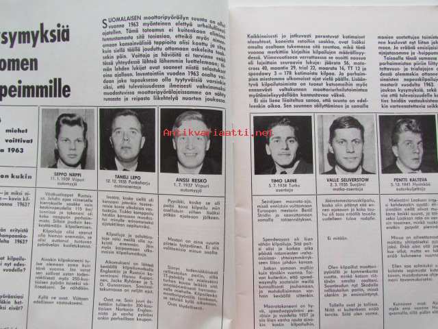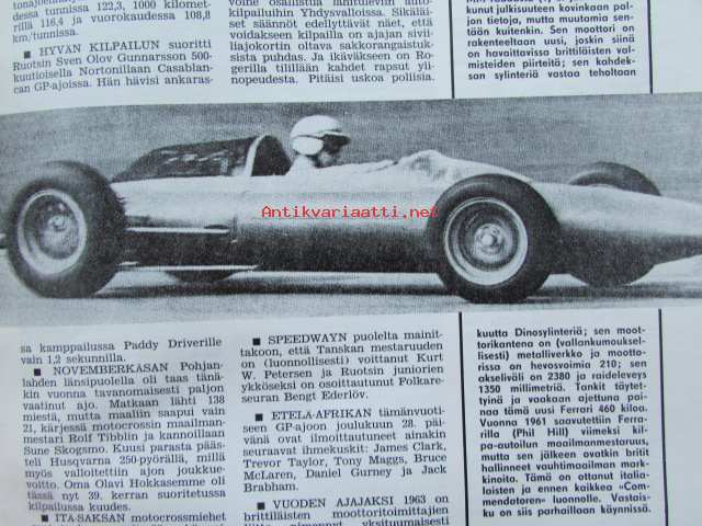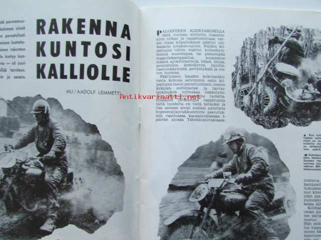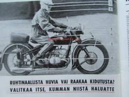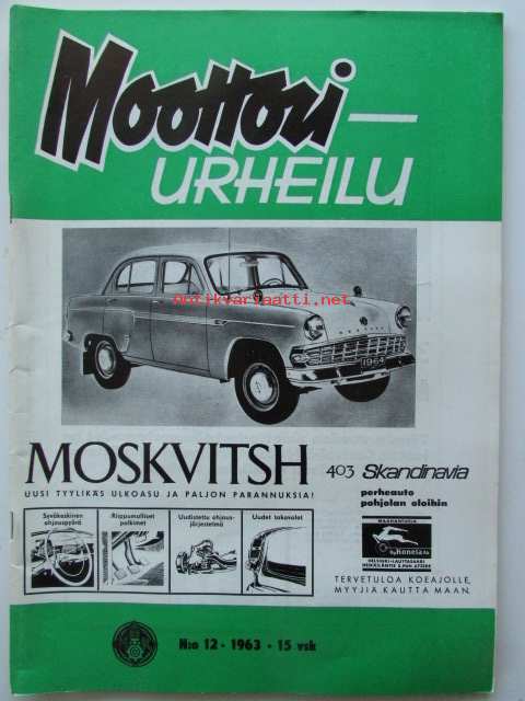 Moottori-urheilu 1963 nr 12 Moottoriurheilu 1963 nr 12 -mm. SML on nyt SVUL:n jäsen - Arne Berner edelleenkin SML:n puhemies, Eivät olosuhteet ratkaise vaan into, Elefanttien kohtaus, Rakenne kuntosi Kalliolle, kierros radoilla, Kolmen maailmanennätyksenyö, Mopot ja pojat mukaan, Juutitkin ajavat jo Scott- trialia, 5 vuotta Trialia eli viiden vuoden 26 parasta, Maailman parhaita, Sykkeitä automaailman valtimolla, Miehiä jotka hallitsevat ralliteitä, Tämä on OT-ajoa.21 x 29 cm.