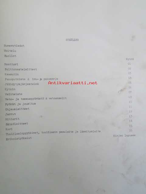 | Saatavilla | 1 kpl | | Julkaisuvuosi | 1971 | | Kunto | K2 | | Sidonta/painoasu | Kansio | | Kielet | Suomi |