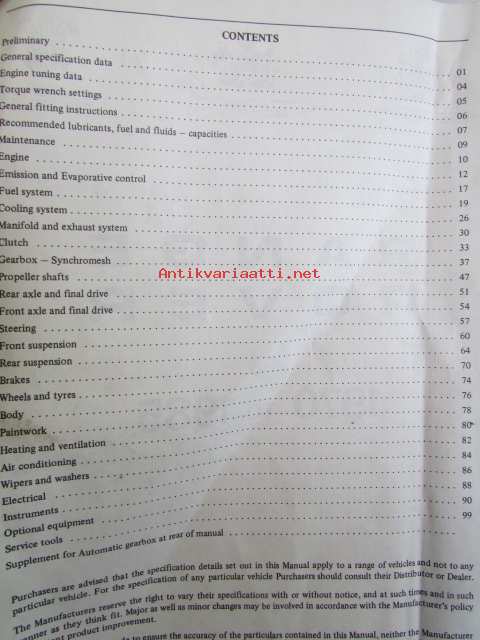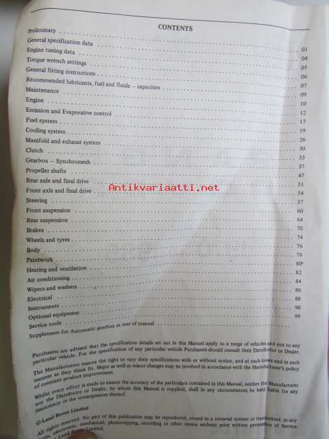 Range Rover Workshop manual 1970 to 1985 ( AKM 3630 ) - Korjauskäsikirja, Katso tarkemmat mallit ja sisällysluettelo kuvista