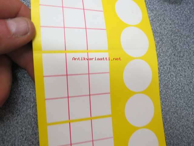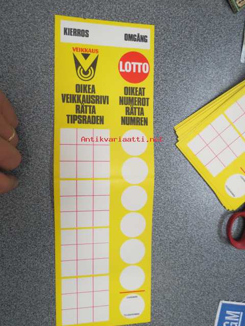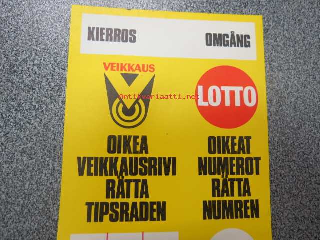 Veikkaus oikea veikkausrivi - rätta tipsraden / Lotto oikeat numerot - rätta numren -asiamiehen toimipaikkaan tarkoitetut oikeitten rivien ilmoitukset, ohutta kartonkia11 x 34 cm. Taitettu keskeltä alunperinkin.