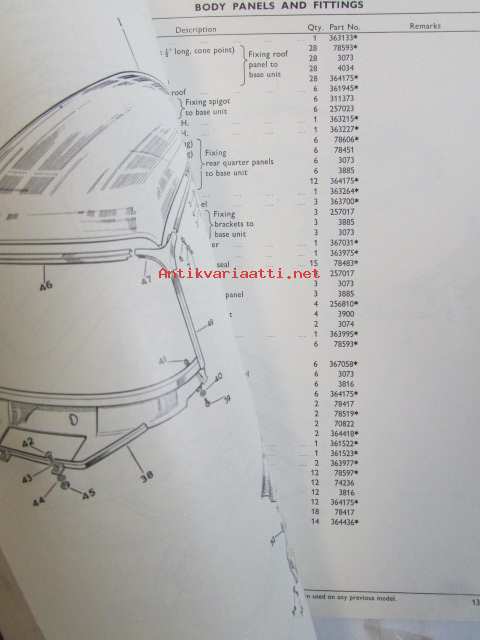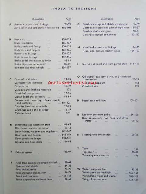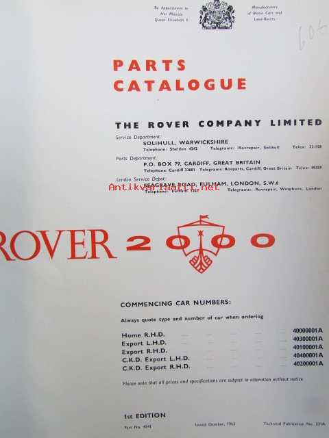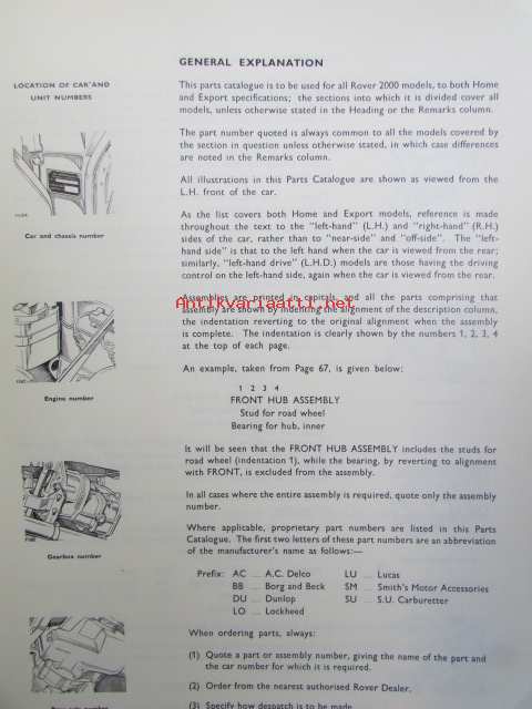 British Leyland Rover 2000 Parts Catalogue - Varaosakirja, Katso tarkemmat mallit ja sisällysluettelo kuvista