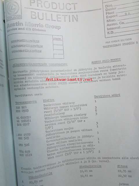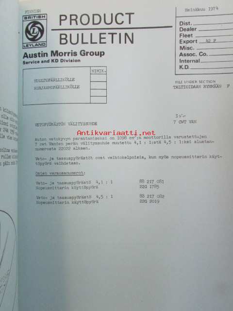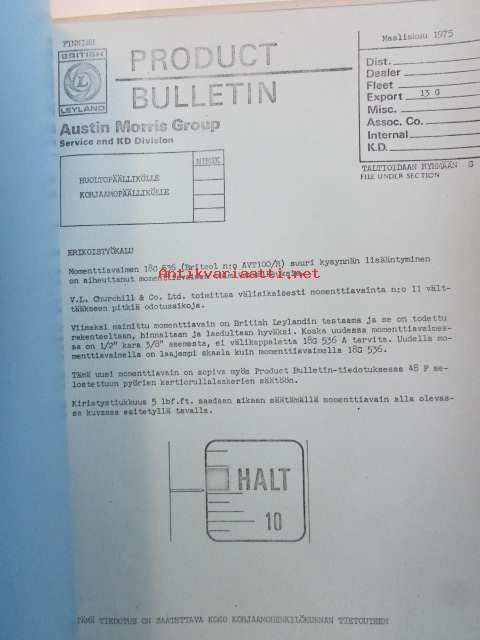 | Saatavilla | 1 kpl | | Julkaisuvuosi | 1975 | | Kunto | K2 | | Sidonta/painoasu | Kansio | | Kielet | Englanti |