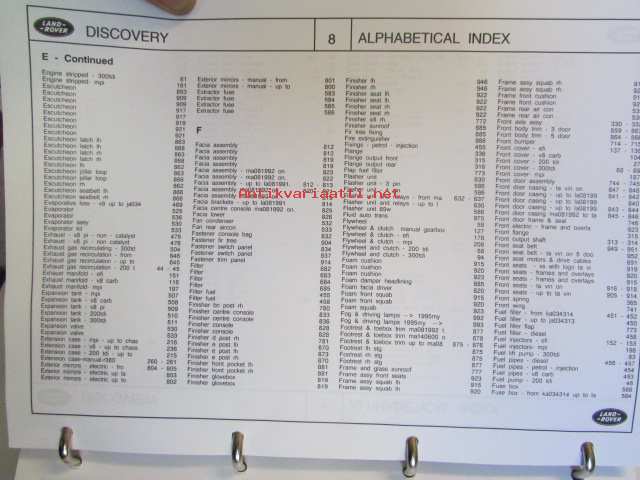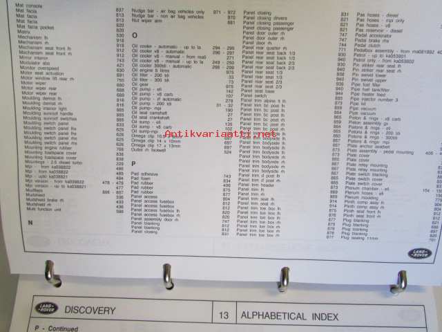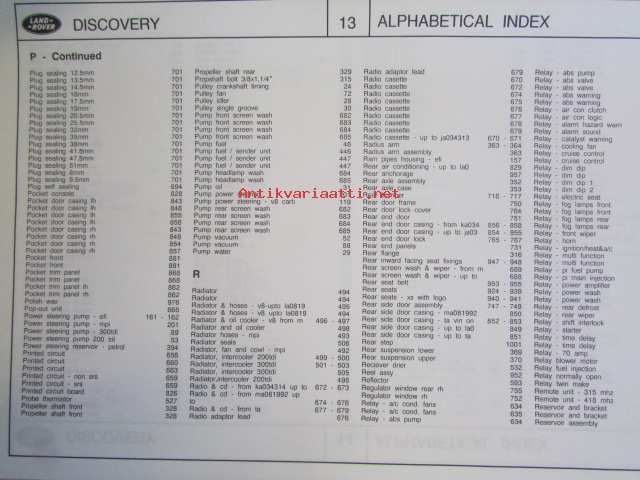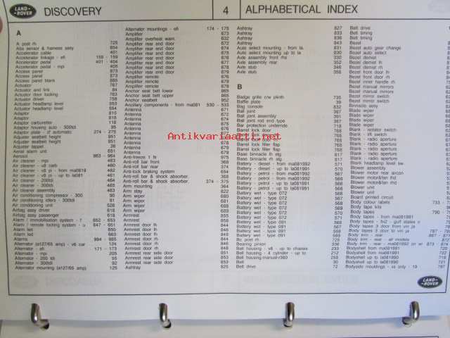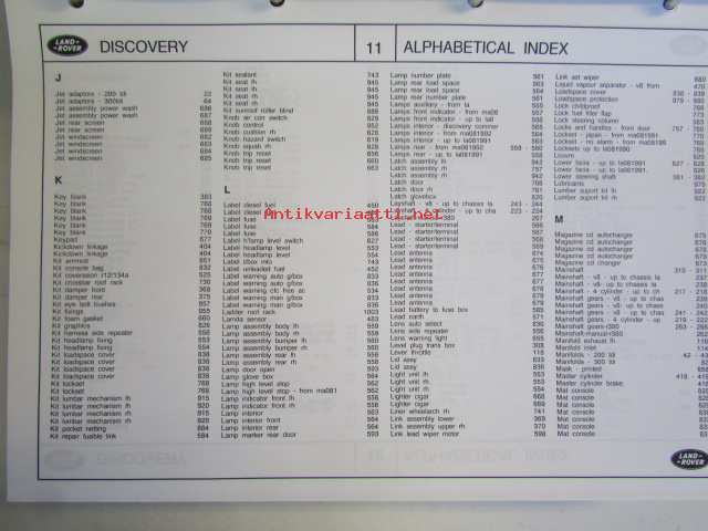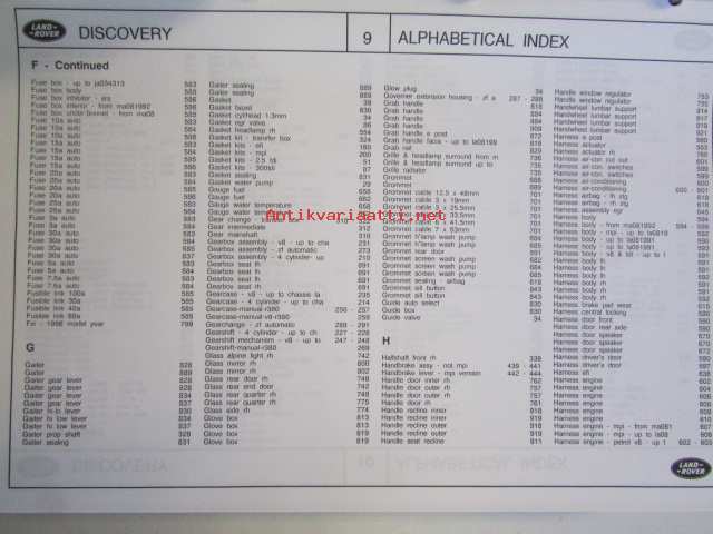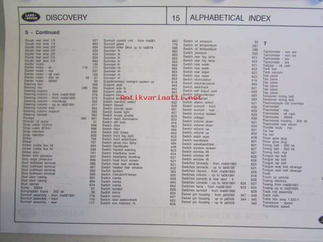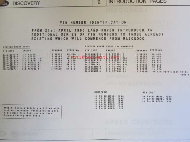 Land-Rover Discovery Genuine Parts ( RTC 9947CD ) january 1996, Varaosaluettelo, Katso tarkemmat mallit ja sisällysluettelo kuvista