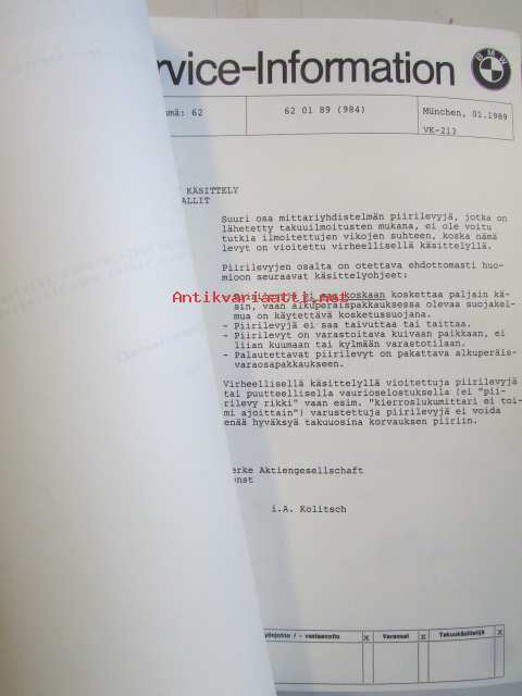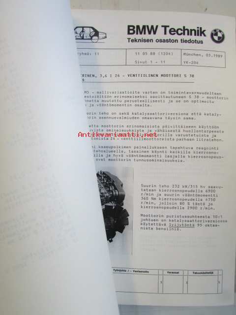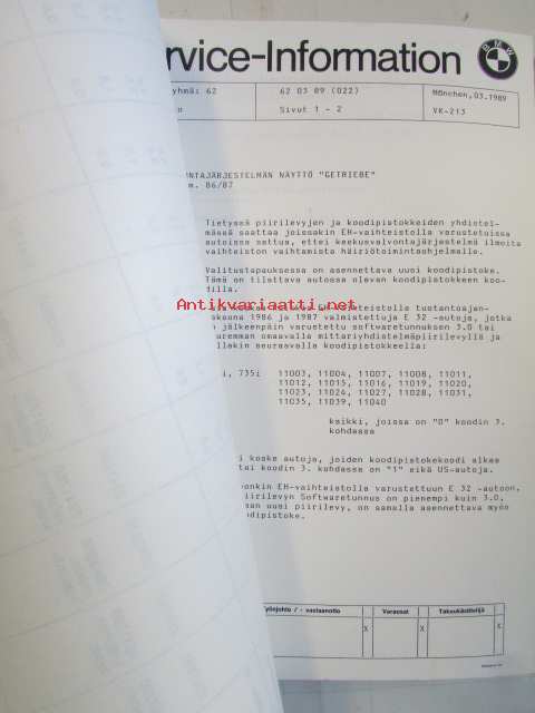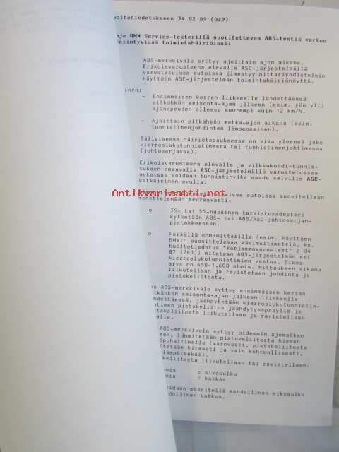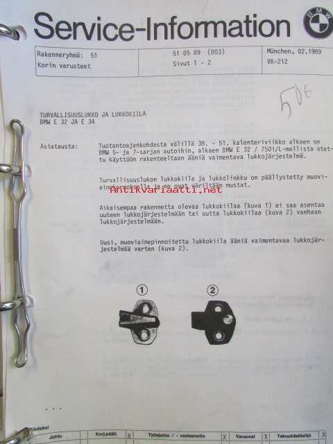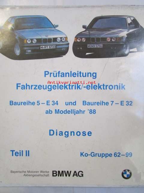 BMW Prufanleitung Fahrzeugelektrik/-elektronik Baureihe 5 - E 34 und Baureihe 7 - E 32, Modelljahr 1988, Autosähkön ja Elektroniikan koeestusohje 2. kansio, Katso kuvasta tarkemmat malli ja sisällystiedot.