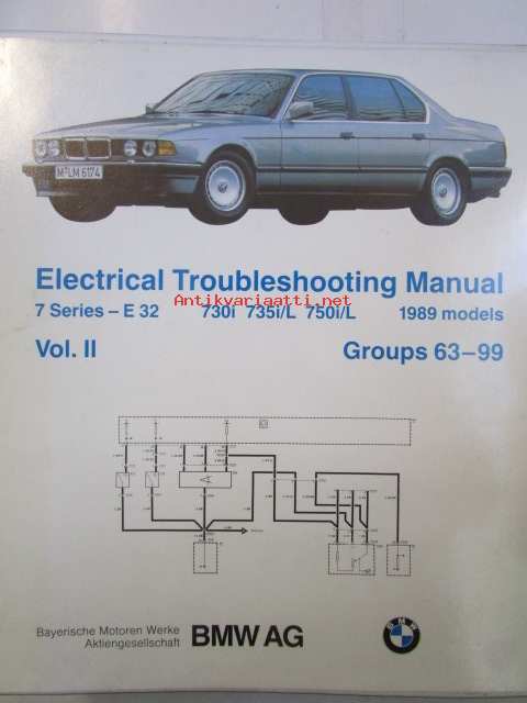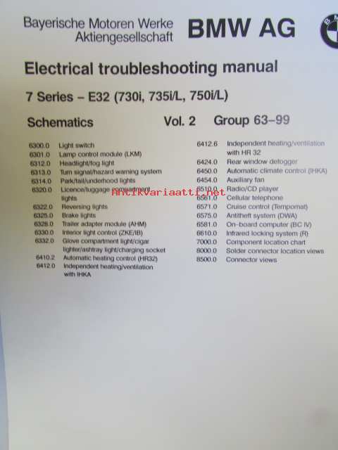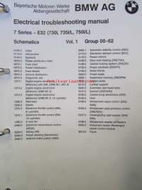BMW Electrical Troubleshooting Manual, 7 Series E 32, 730i, 735i/L, 750i/L, Models 1989 Vol. 2, Group 63-99, elektroniikan vianmääritys ohjekirja, Katso kuvasta tarkemmat malli ja sisällystiedot