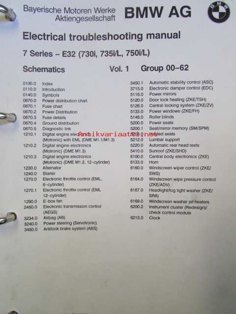 BMW Electrical Troubleshooting Manual, 7 Series E 32, 730i, 735i/L, 750i/L, Models 1989 Vol. 2, Group 63-99, elektroniikan vianmääritys ohjekirja, Katso kuvasta