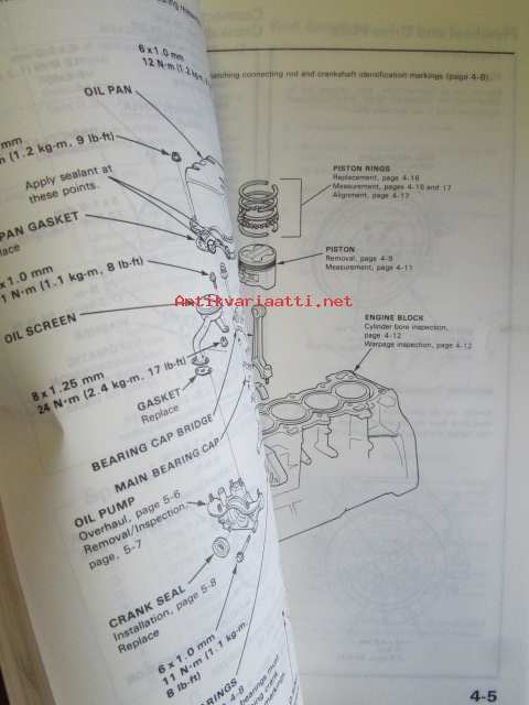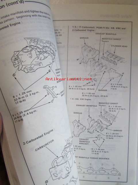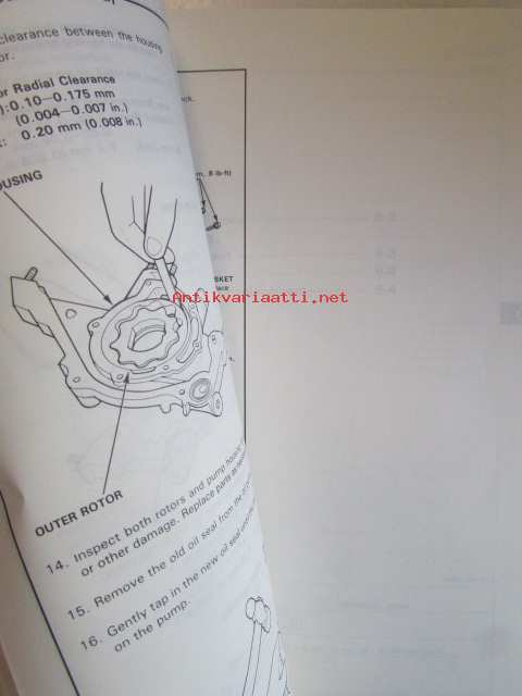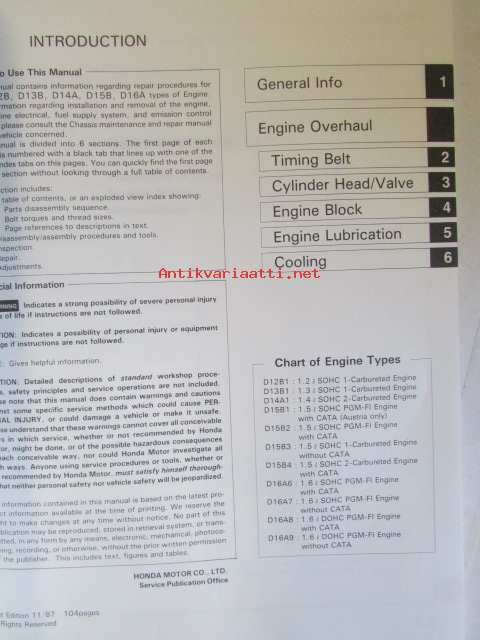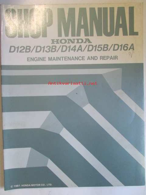 Honda Shop Manual D12B/D13B/D14A/D15B/D16BA Engine maintenance and Repair -korjaamo-ohjekirja, katso tarkemmin kuvista mahdolliset mallit ja sisällys.