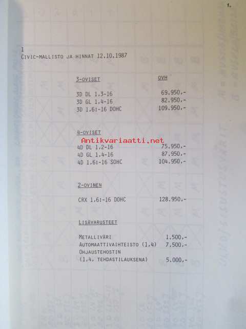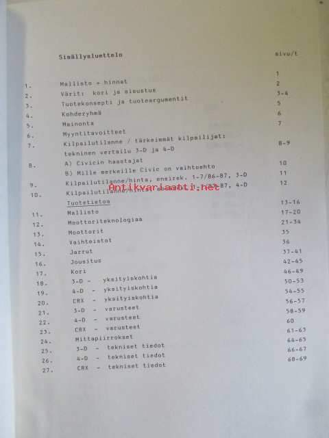 Honda Civic 1988 tuotekansio katso tarkemmin kuvista mahdolliset mallit ja sisällys.
