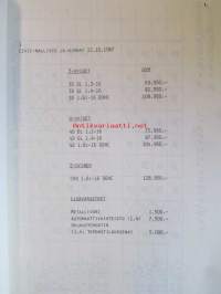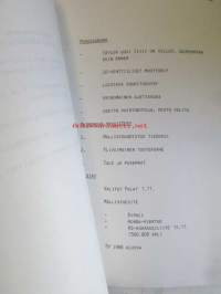 | Saatavilla | 1 kpl | | Julkaisuvuosi | 1987 | | Sivuja | 69 | | Kunto | K2 | | Sidonta/painoasu | Nidottu (pehmeäk.) | | Kielet | Suomi |