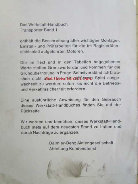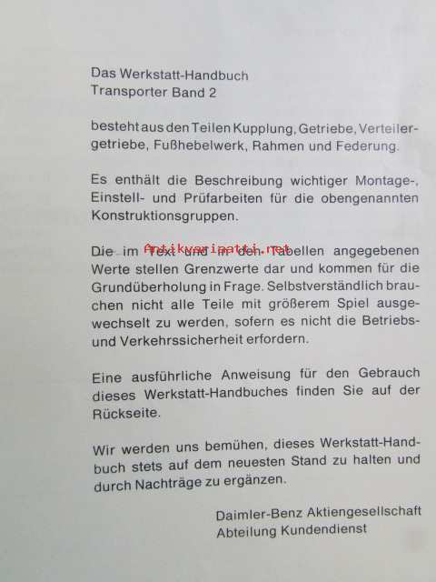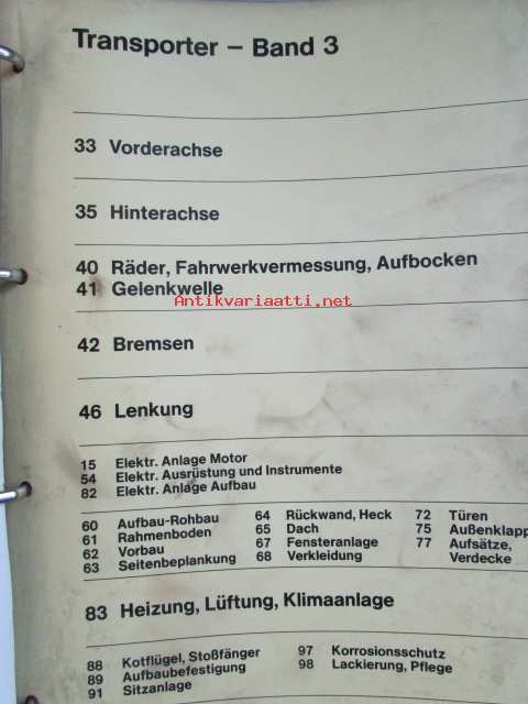 Daimler-Benz Transporeter Service Werkstatt-Handbuch Band 1,2,3. - Korjaamokäsikirja osat 1-3, Katso tarkemmat mallit ja sisällysluettelo kuvista
