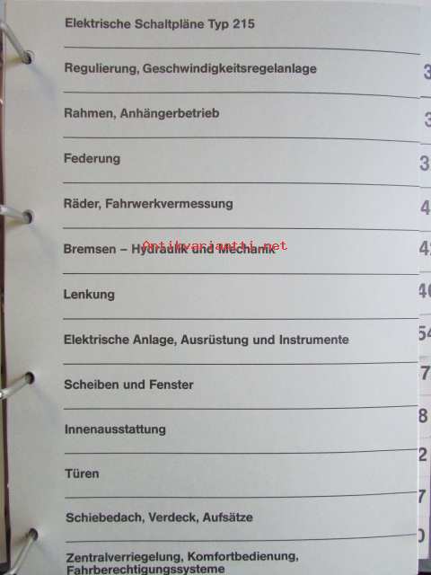 Daimler-Benz Elektrische Schaltpläne Typ 215, Personenwagen band 1 und 2 - auton sähkökaavioita osat 1-2, Katso tarkemmat mallit ja sisällysluettelo kuvista