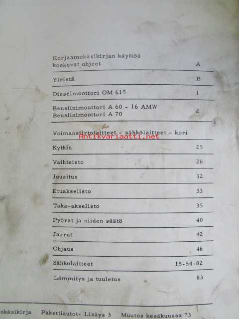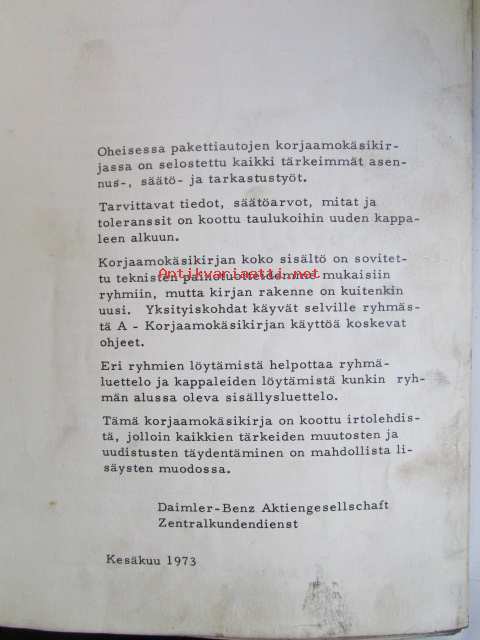 Daimler-Benz Service, Pakettiautot korjaamokäsikirja, Katso tarkemmat mallit ja sisällysluettelo kuvista
