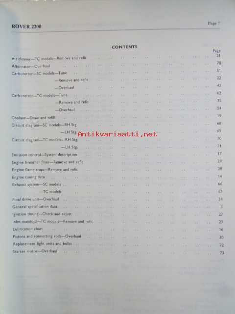 Rover 2200, Supplement to Workshop Manual ( Part no. 605028 S1 ) - Korjauskäsikirja, katso kuvista tarkemmin muut tiedot ja sisällysluettelo