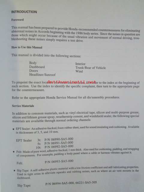 Honda Noise Repair Manual Accord Model Series from 1986, katso kuvista tarkemmin muut tiedot ja sisällysluettelo