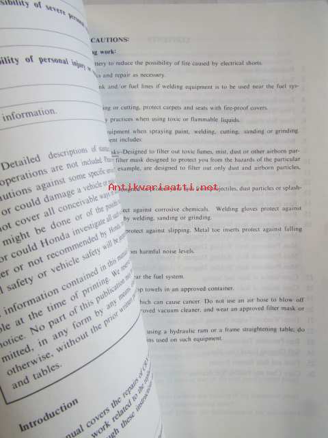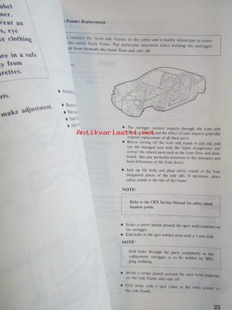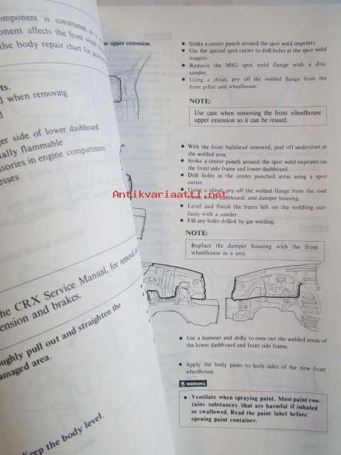 Honda CiRX Shop Manual Body Repair 1988 - Rungon korjauskirja, katson kuvista tarkemmin muut tiedot ja sisällysluettelo