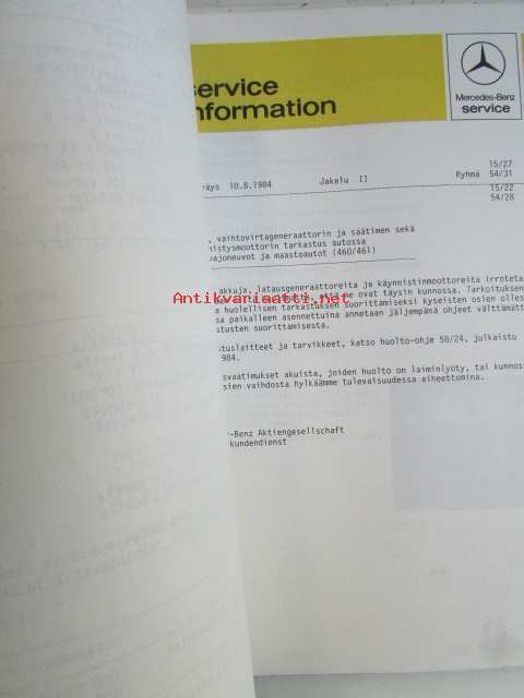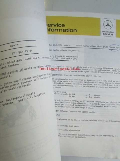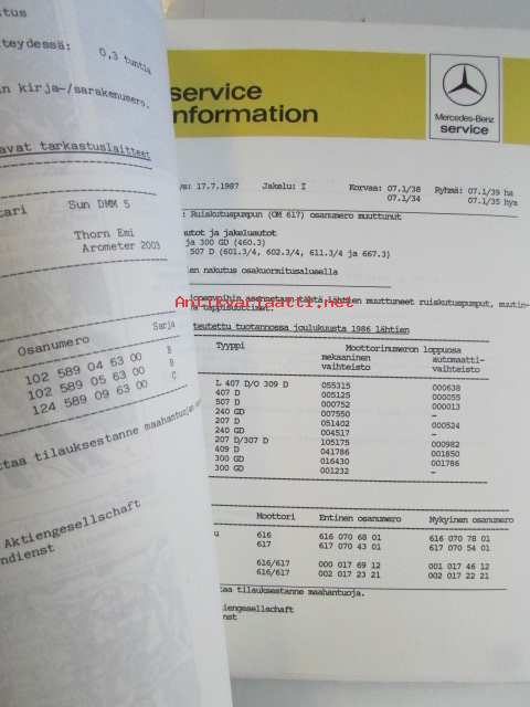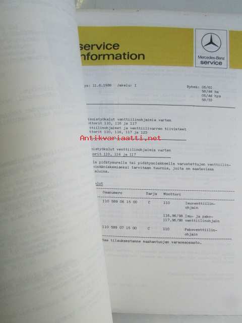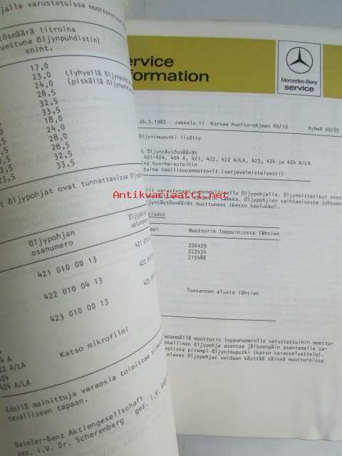 Mercedes-Benz SI Service Information - Huoltokirjeitä, Katso kuvista tarkemmin mallimerkinnät ja sisällysluettelo