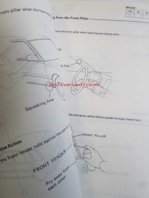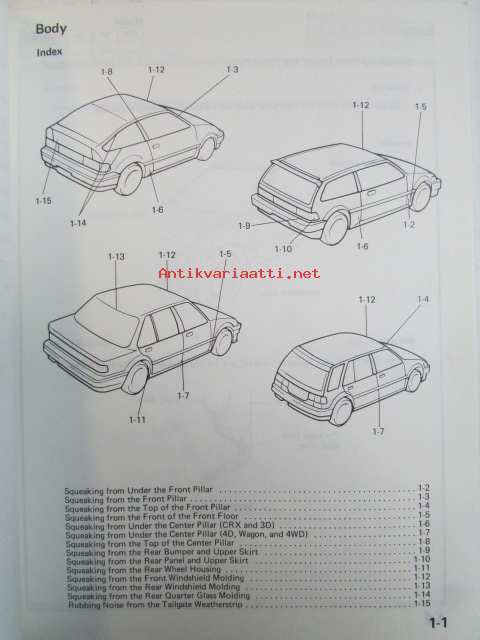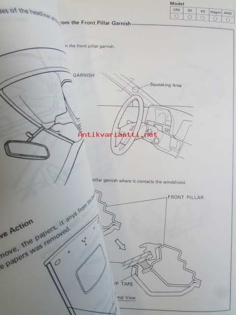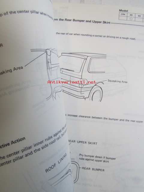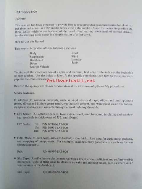 Honda Noise Control Repair Manual, Civic Model Series from 1988, katso kuvista tarkemmin muut tiedot ja sisällysluettelo