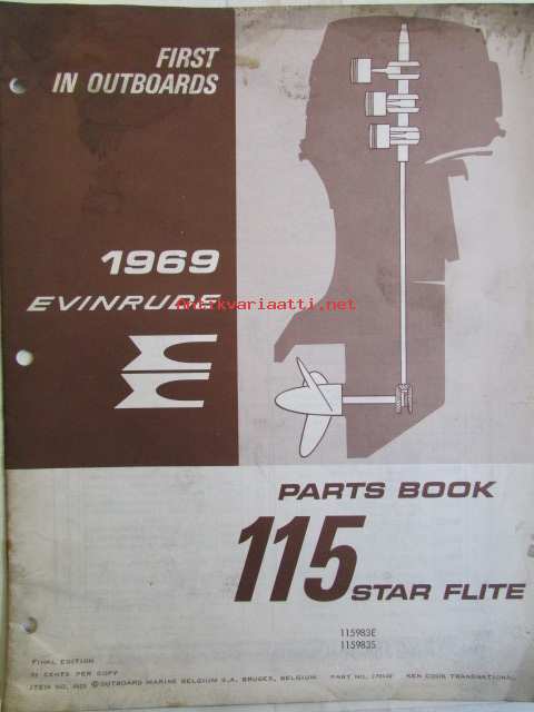 Evinrude 1969 Parts book 115 Star Flite (First in outboards), katso tarkemmat mallimerkinnät kuvista.