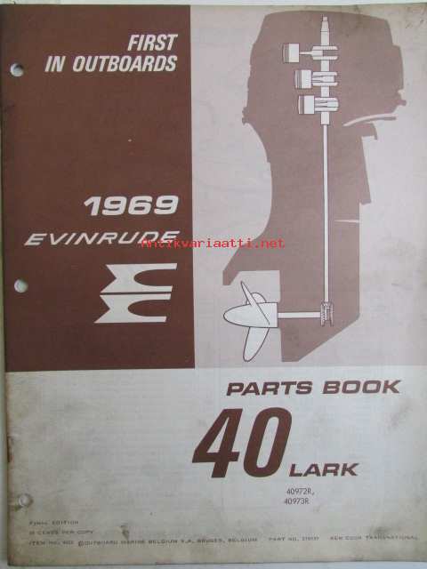 Evinrude 1969 Parts book 40 Lark (First in outboards), katso tarkemmat mallimerkinnät kuvista.