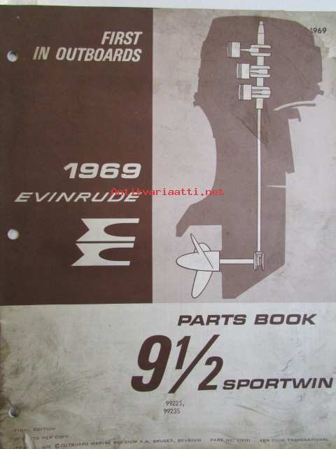 Evinrude 1969 Parts book 9 1/2 Sporstwin (First in outboards), katso tarkemmat mallimerkinnät kuvista.