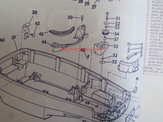 Evinrude 1971 Parts book 50 HP, katso tarkemmat mallimerkinnät kuvista.