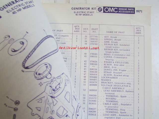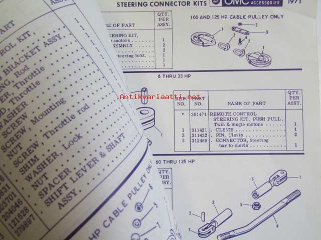 Evinrude 1971 Accessories Parts book, katso tarkemmat mallimerkinnät kuvista.