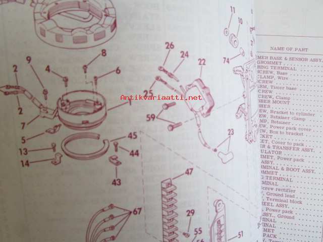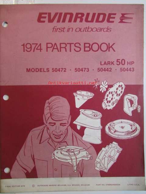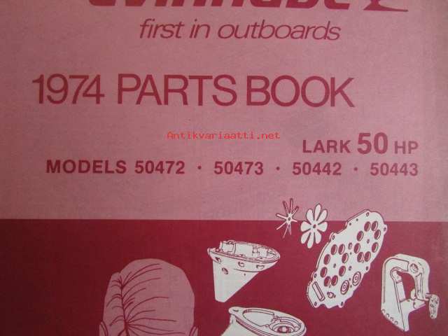 Evinrude 1974 Parts book Lark 50 HP (First in outboards), katso tarkemmat mallimerkinnät kuvista.