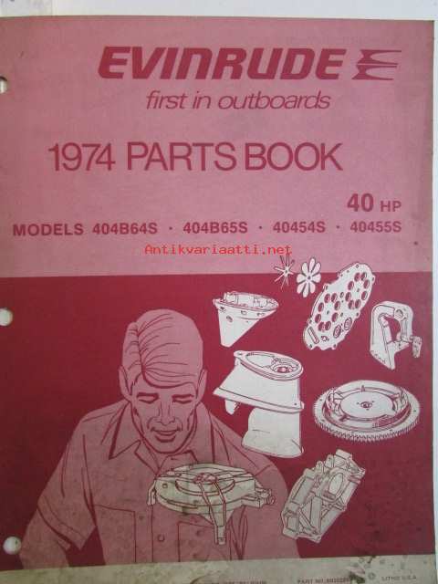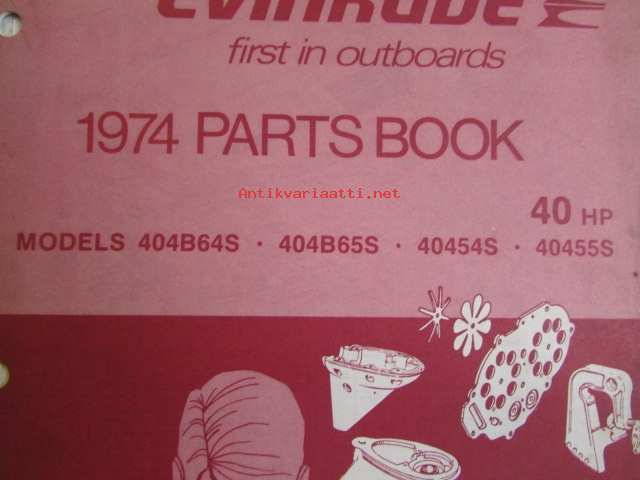 Evinrude 1974 Parts book 40 HP (First in outboards), katso tarkemmat mallimerkinnät kuvista.
