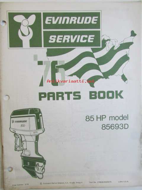 Evinrude Service 1976 Parts book 85 HP, katso tarkemmat mallimerkinnät kuvista.