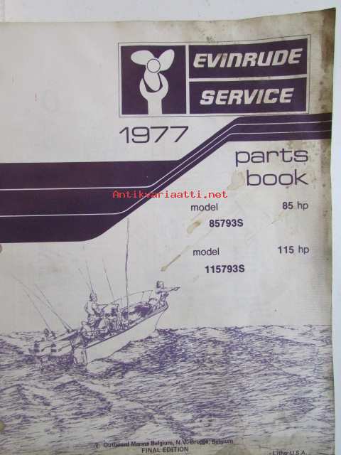 Evinrude Service 1977 Parts book 85 HP / 115 HP, katso tarkemmat mallimerkinnät kuvista.
