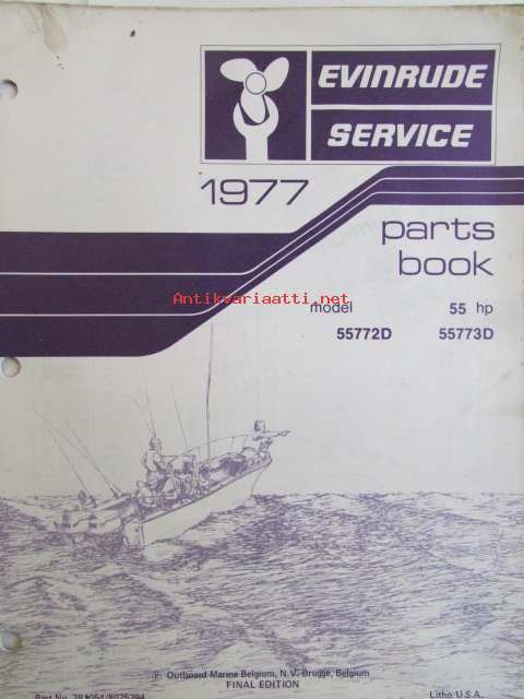 Evinrude Service 1977 Parts book 55 HP, katso tarkemmat mallimerkinnät kuvista.